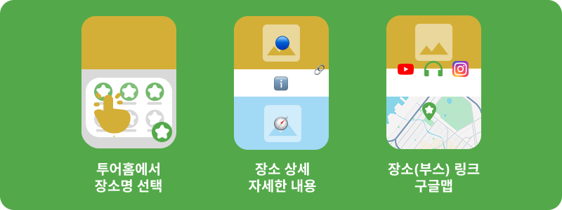 - 멀티미디어 연결: 현장을 더 깊이 이해하게 만드는 유튜브 영상, 오디오 가이드 및 인스타 그램 연결